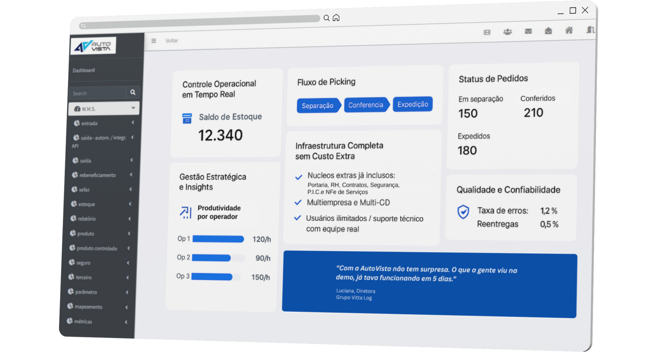“Reduzi o tempo de separação em 40% só com a lógica de picking da AutoVista.”